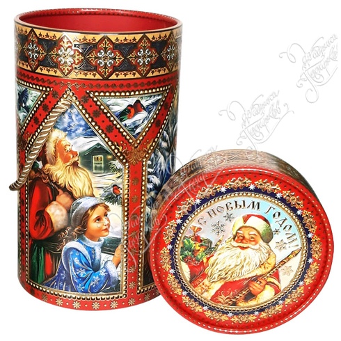 Футлярный картон, тиснение золотом и серебром, конгрев, шелковая витая ручка.